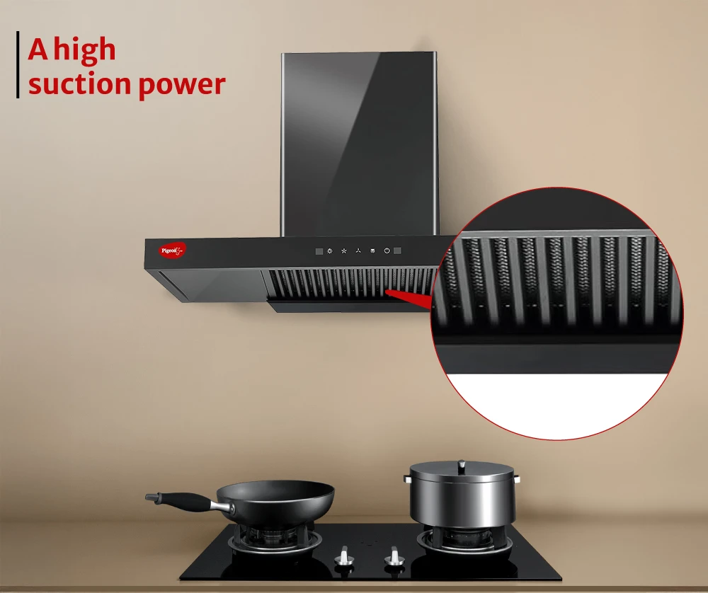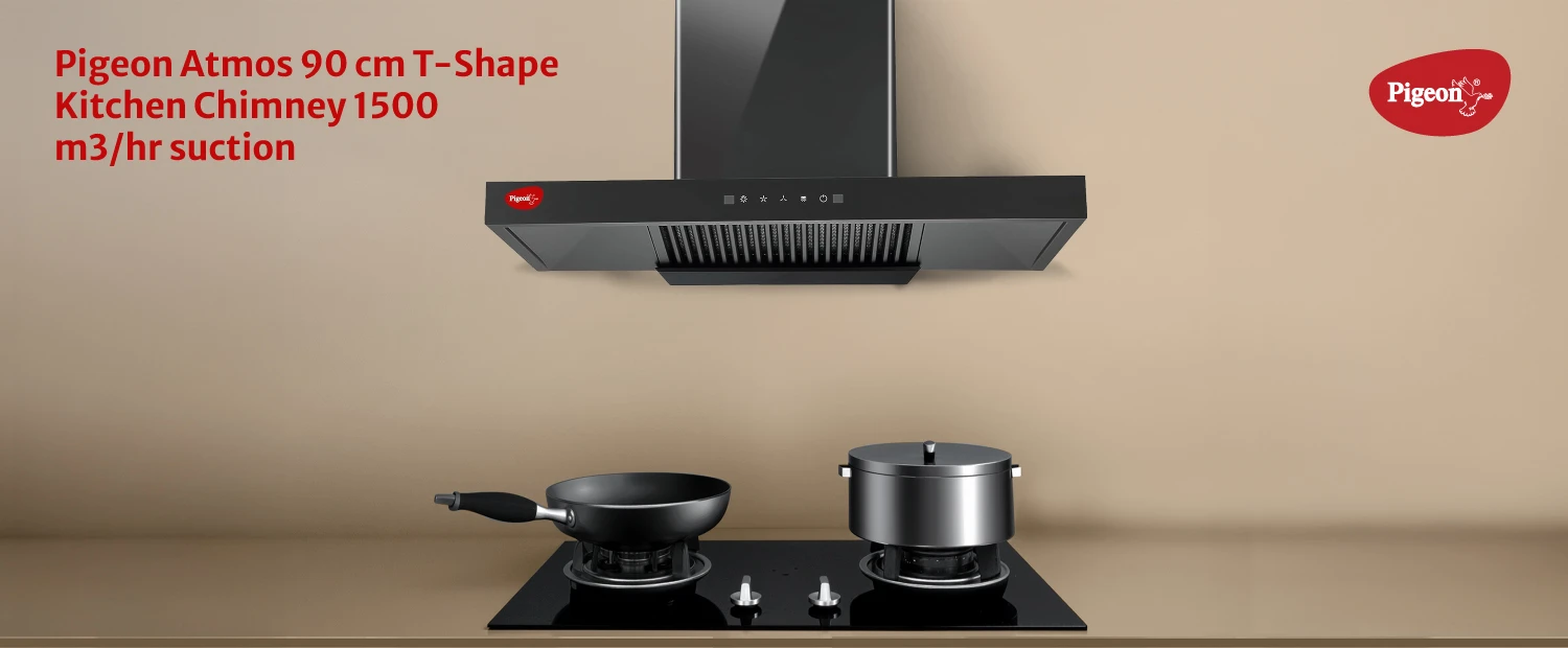 "T-shape filterless kitchen chimney with modern design. Ensures powerful suction and low-maintenance operation for daily cooking."