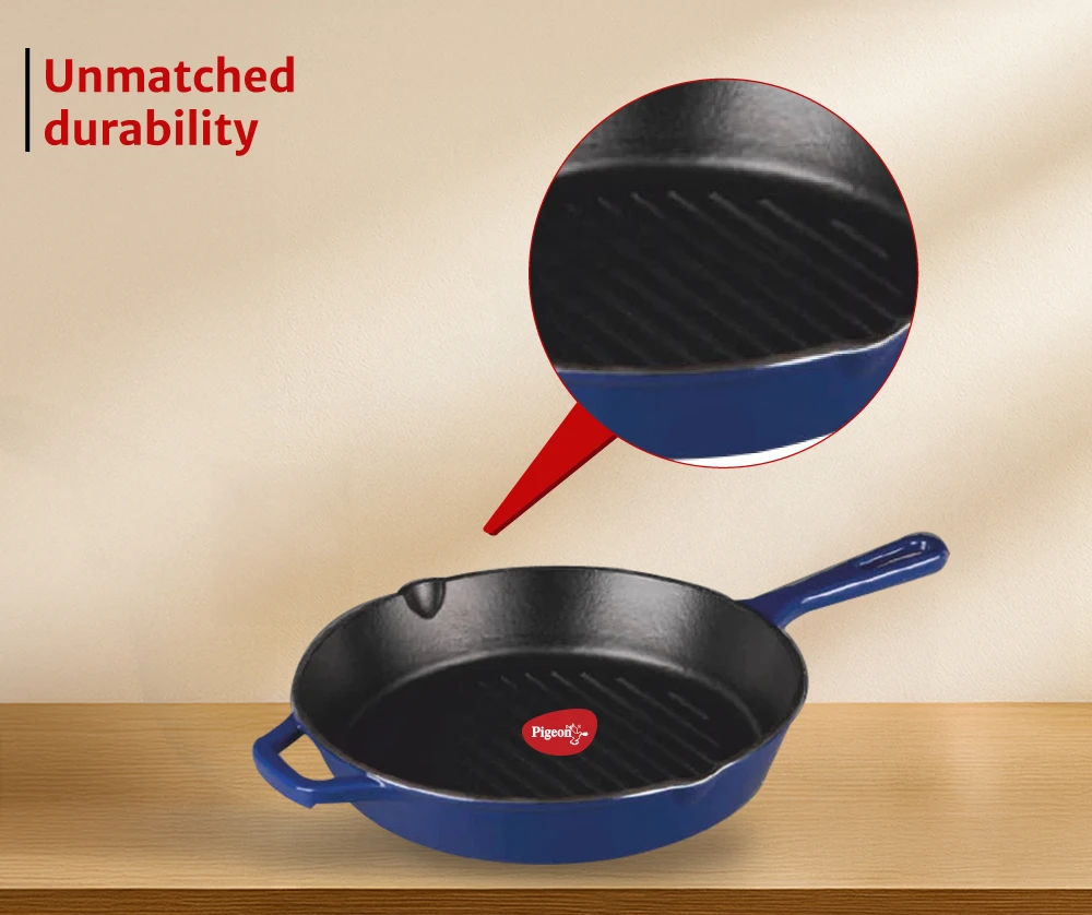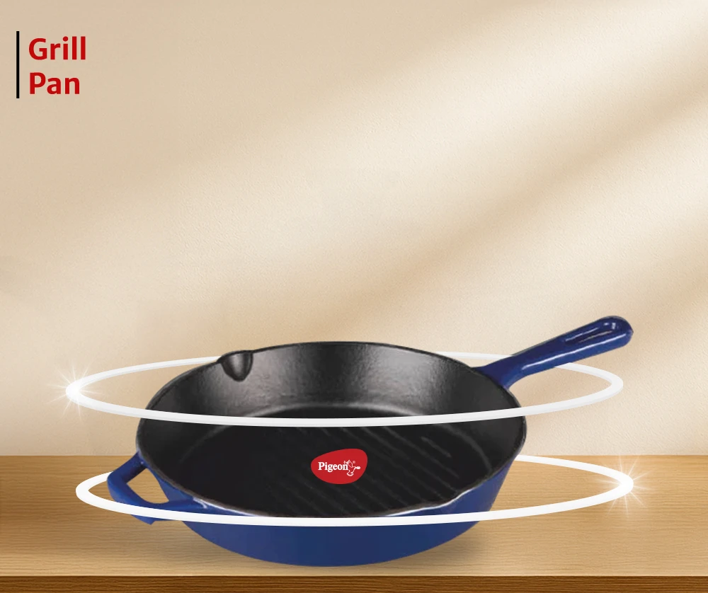 "High-quality cast iron grill pan with refined finish. Ensures even grilling and long-lasting performance."