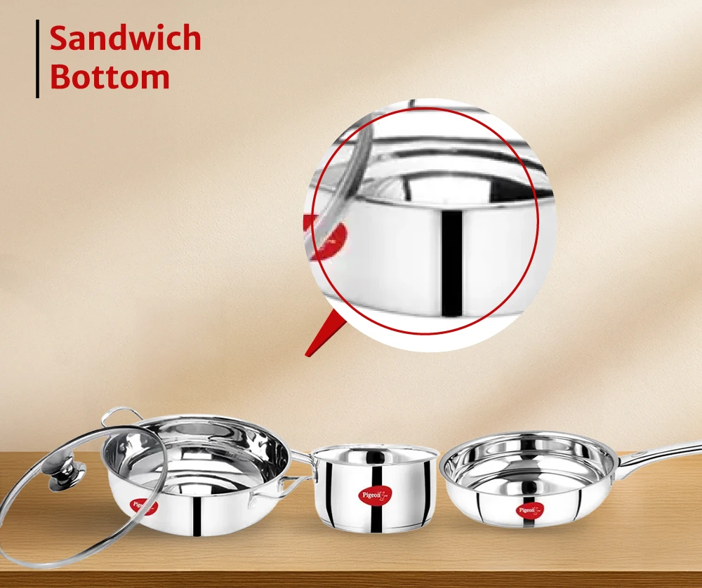 Home / pigeon / cooking / cookware / spl-stainless-steel-3-pcs-set-kadai-220-frypan-220-sauce-pan-160