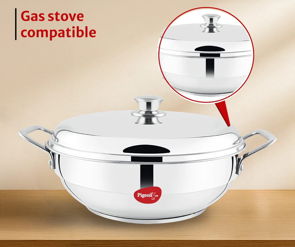 SS knob on the lid of Kadhai for smooth handling