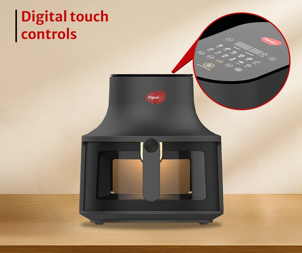High-capacity air fryer with orbitron airflow technology for even cooking.