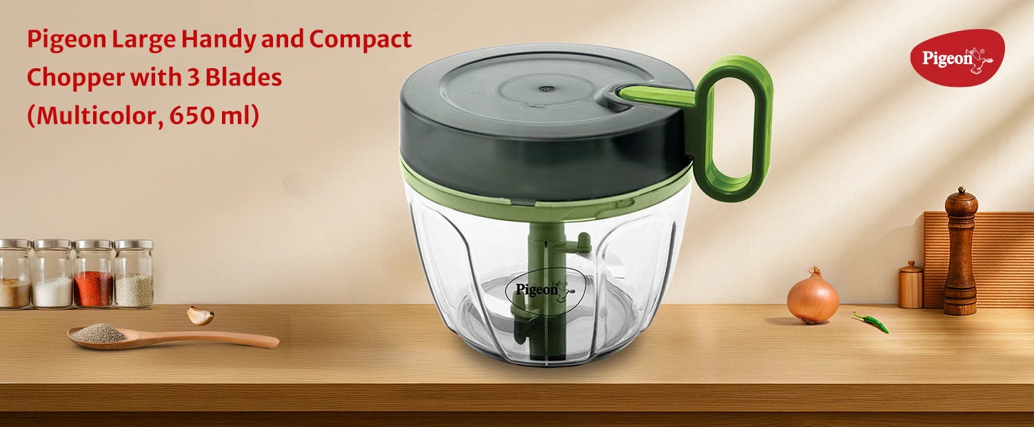 - Pigeon Handy Chopper Pro Large - This speedy manual chopper will help you cut vegetables, fruits and nuts. Makes smart work of tough cutting tasks and hassle free experience which saves up to 50% of your time.