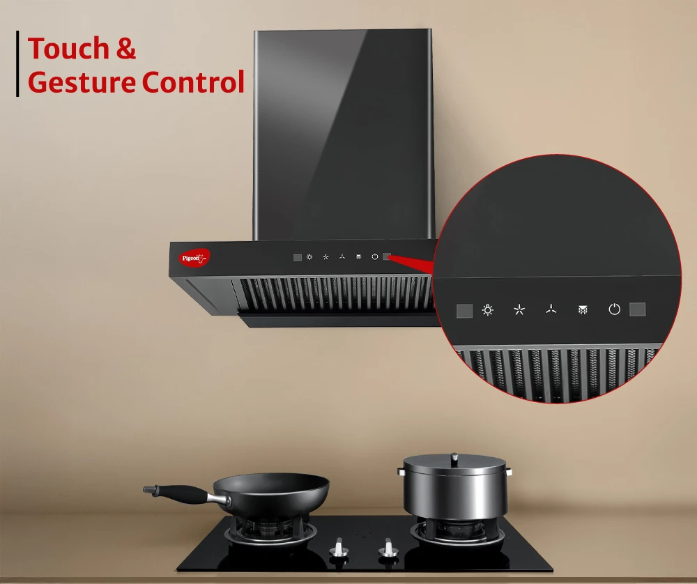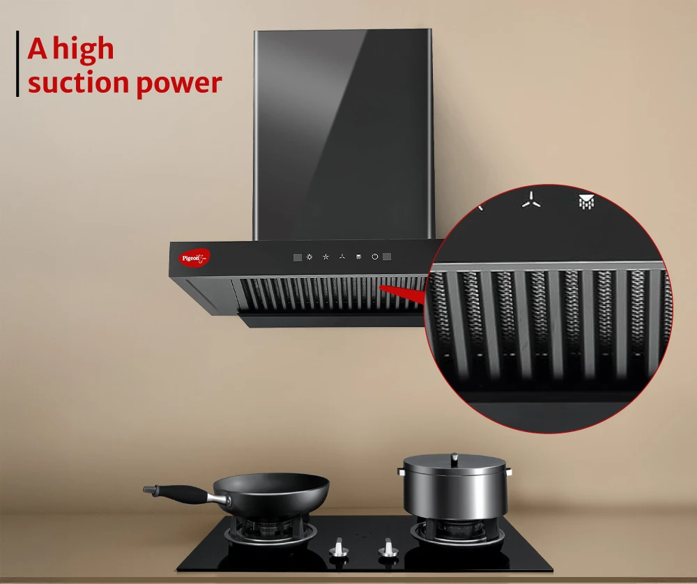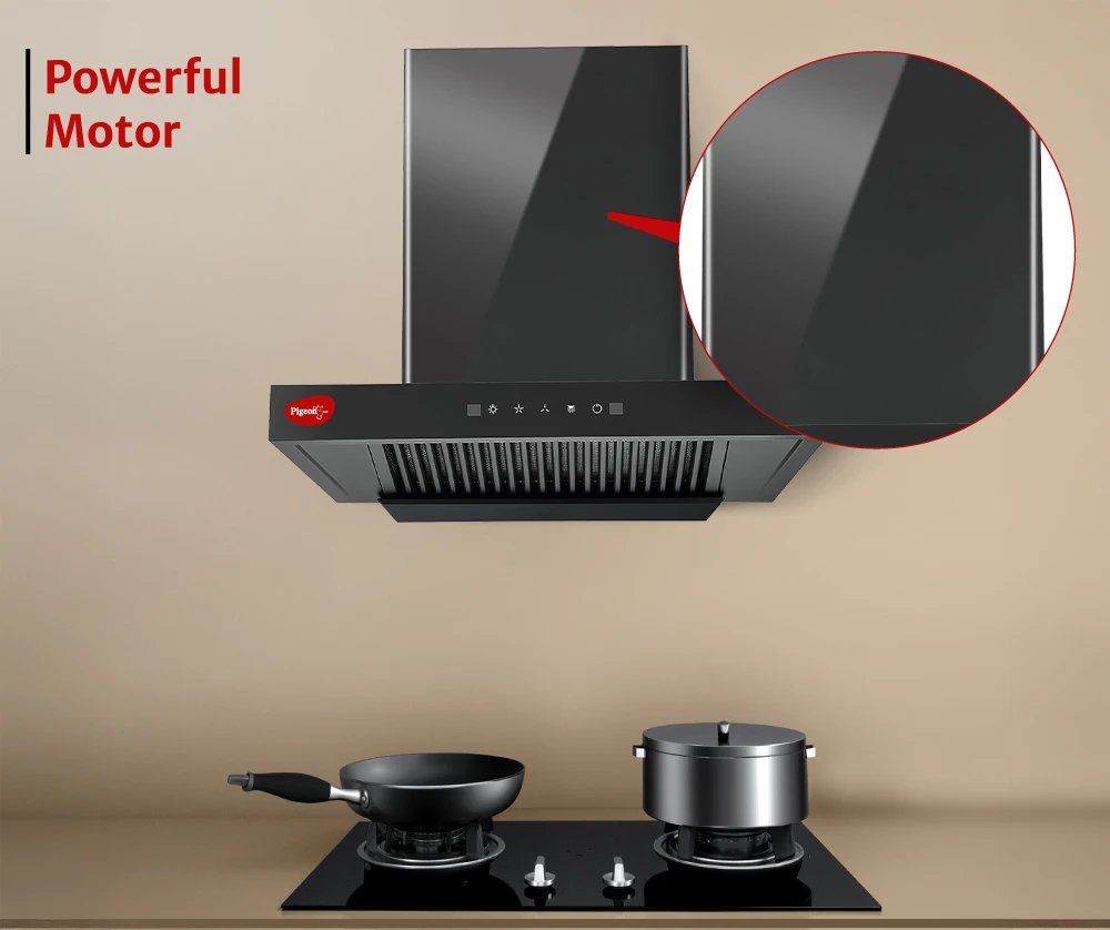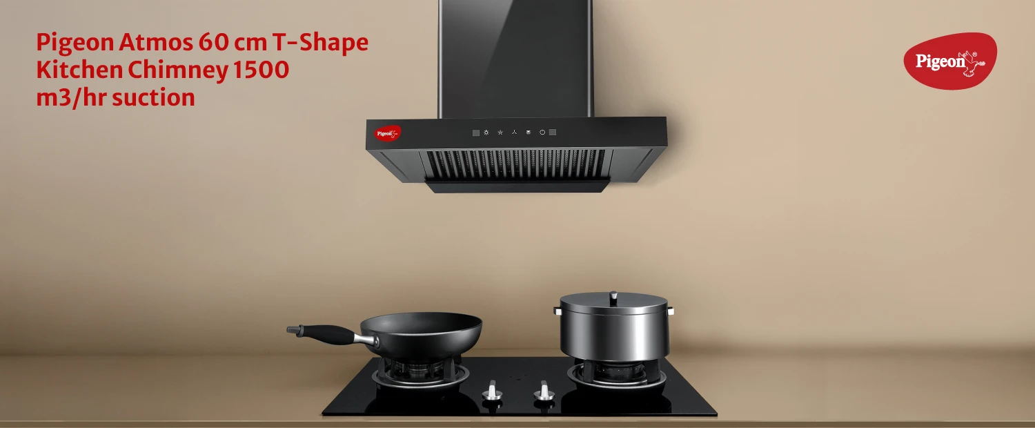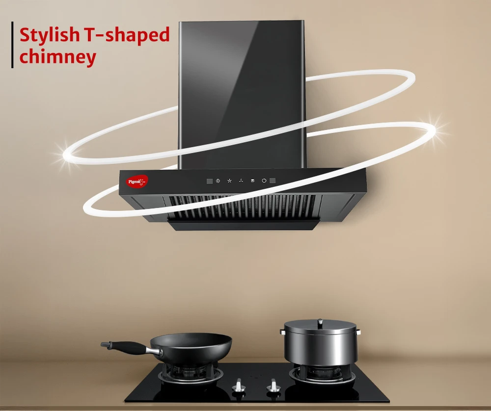 "T-shape filterless kitchen chimney with modern design. Ensures powerful suction and low-maintenance operation for daily cooking."