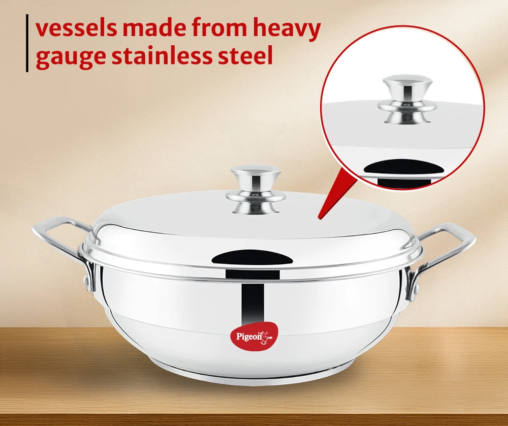 SS knob on the lid of Kadhai for smooth handling