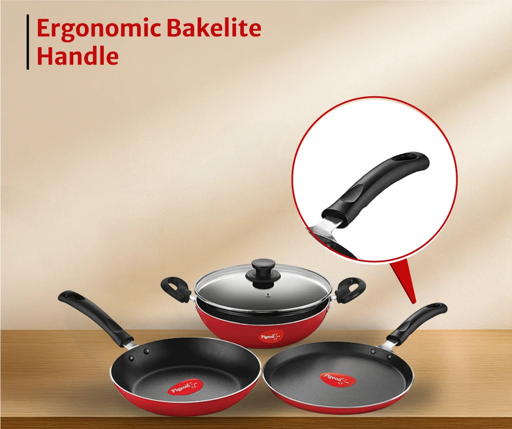 Package Contents: 1 - Fry Pan, 1 - Flat Tawa, 1 - Kadai with Glass Lid | Warranty Information: 1 Year