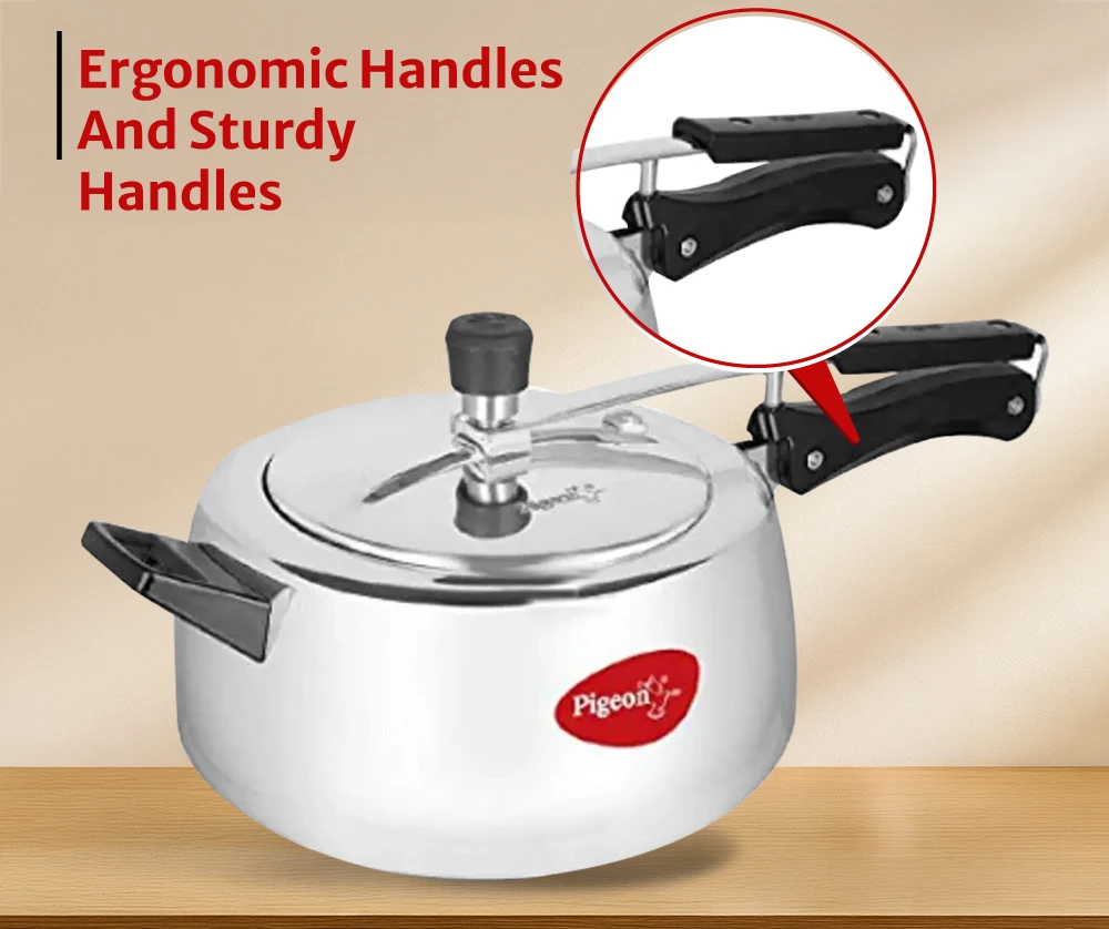 "Sleek aluminium pressure cooker with induction compatibility. Combines durability with efficient heat distribution."