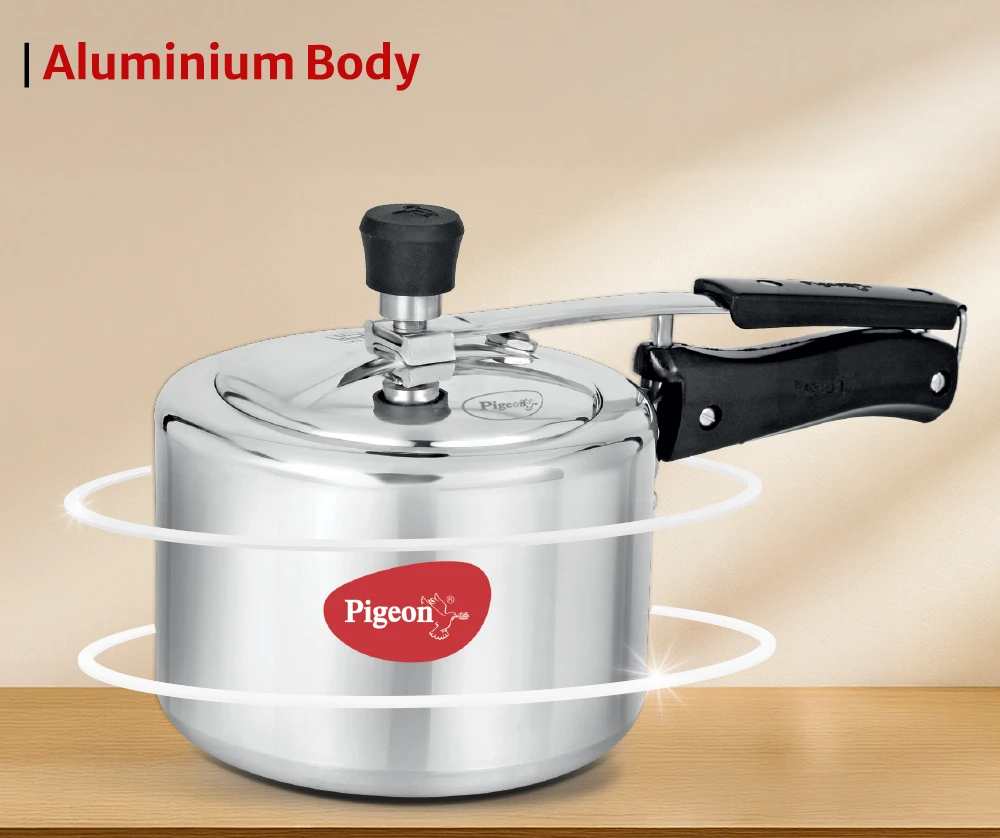 "Compact inner-lid pressure cooker with durable aluminium build. Designed for efficient and controlled pressure cooking."