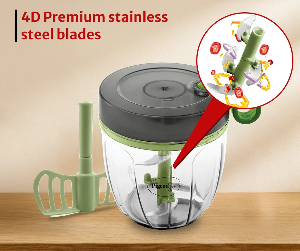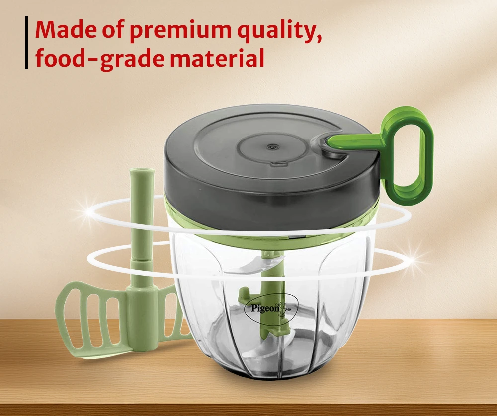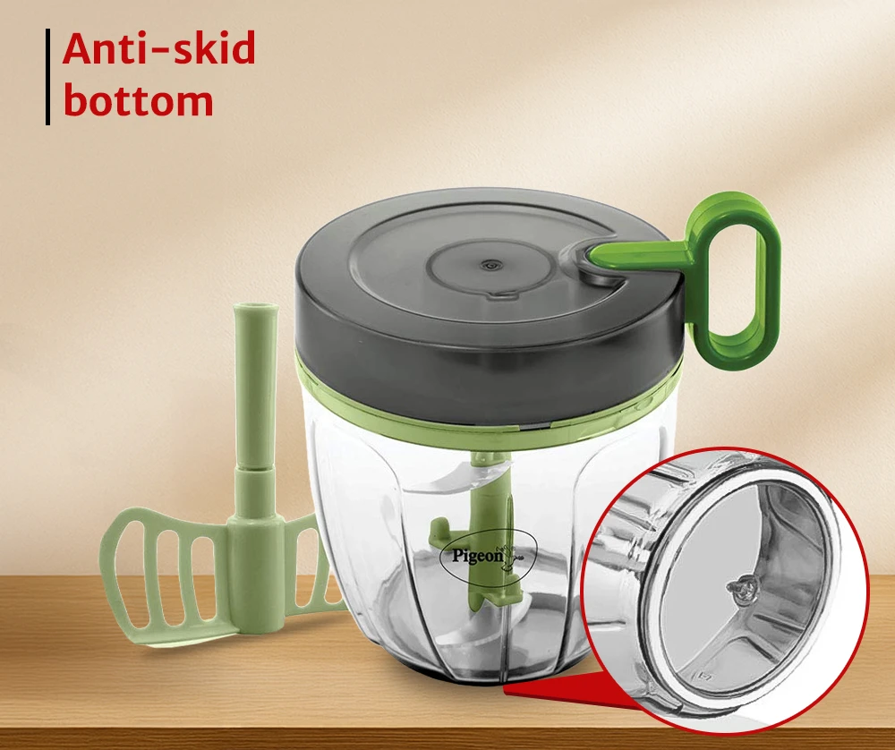 - Space Saving & Portable - Pigeon Handy Chopper Pro we can store very easily in our kitchen. This manual food chopper has advantage of simple structure, compact value, and convenience. 900 ml capacity is suitable for large quantity usage. Which can be used to chop vegetables for making parathas, sabzi etc.,,